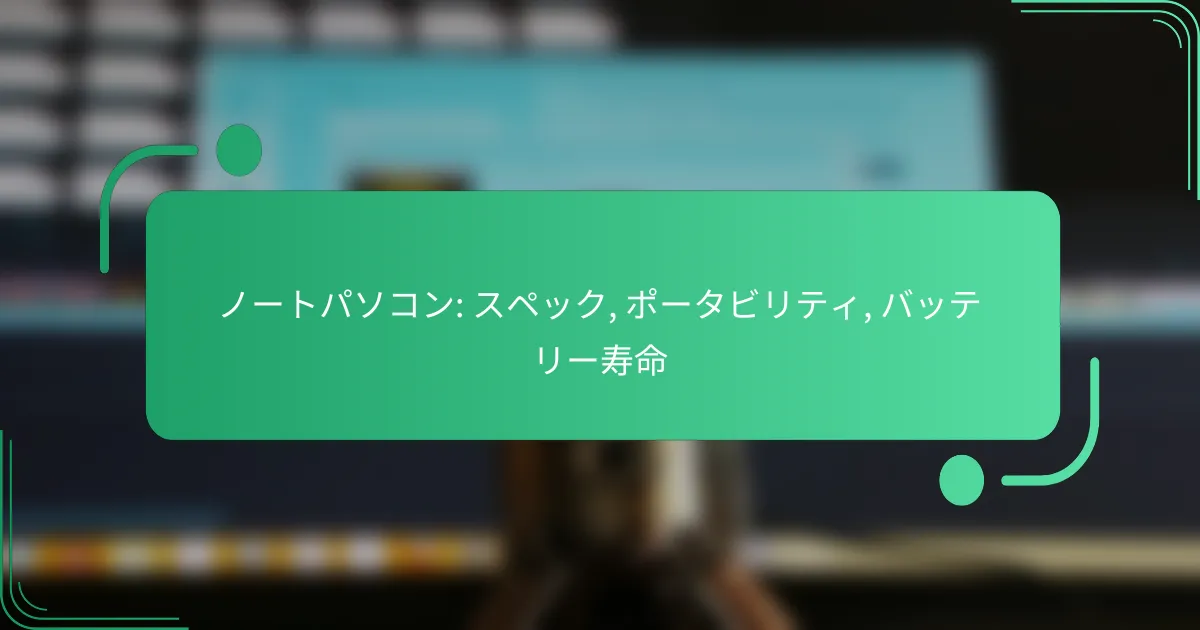 ノートパソコンを選ぶ際には、スペック、ポータビリティ、バッテリー寿命の3つの要素が重要です。スペックは性能を示し、ポータビリティは持ち運びやすさを評価し、バッテリー寿命は使用時間に影響を与えます。これらの要素を考慮することで、最適なノートパソコンを見つけることができます。