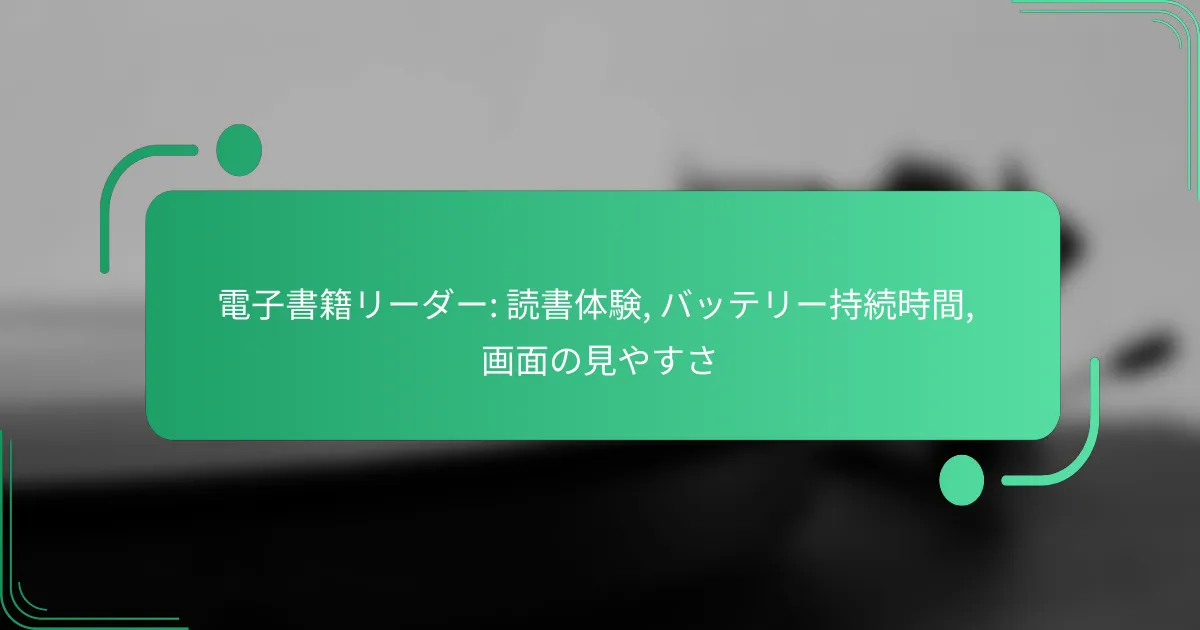 電子書籍リーダーを選ぶ際は、読書体験、バッテリー持続時間、画面の見やすさを重視することが重要です。これらの要素を考慮することで、自分に最適なデバイスを見つけることができます。